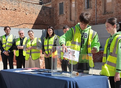 ![]() | Margalida Prohens, acompañada del conseller de Educación y Universidades, Antoni Vera, ha participado en el acto de cologación de la primera piedra del proyecto de ampliación del colegio |